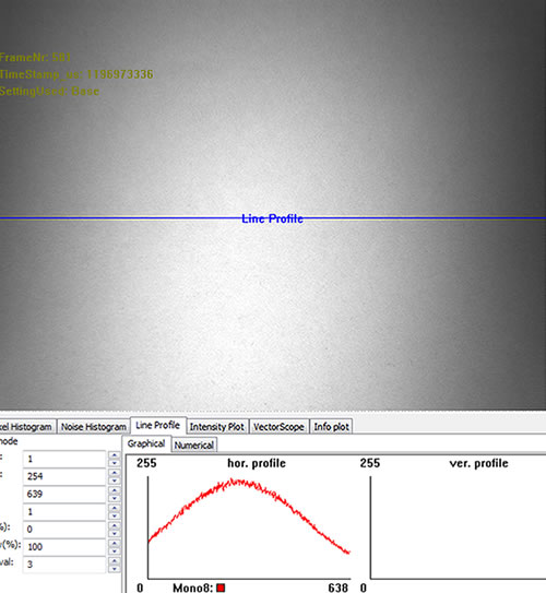 Mit der Flat-Field-Korrektur (Flat Field Correction, FFC) wird jeder einzelne Pixel des Sensors korrigiert, sodass z. B. bei der Aufnahme einer homogenen Fläche gewährleistet wird, dass jedes Pixel den gleichen Wert ausgibt. So können inhomogene Beleuchtungen, eine Vignettierung der Optik oder auch Sensorfehler wie Fixed Pattern Noise oder Photo Response Non Uniformity ausgeglichen werden. Dadurch vermeidet und korrigiert das Feature fehlerbehaftete oder ungünstige Abbildungseigenschaften.