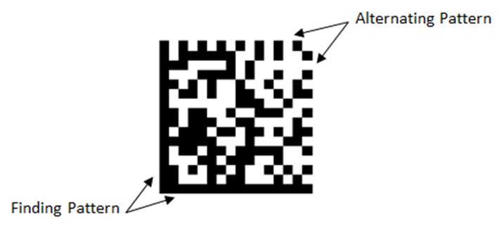 Ein horizontaler und ein vertikaler Rand beschreiben eine Ecke, die als Orientierung für das Lesen dient – das sogenannte „Finding pattern“. Auf den gegenüberliegenden Seiten muss die jeweilige Seite zwischen hellen und dunklen quadratischen Elementen variieren, um die Position und Größe der Matrixstruktur zu beschreiben – das „Alternating Pattern“. Der Datenspeicherbereich befindet sich innerhalb des Symbols.
