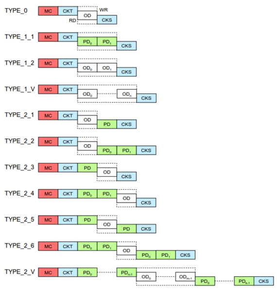 M-Sequence types. MC: M-Sequence Control, CKT: Checksum type, PD: Process data, OD: On-demand data, CKS: Check-sum status