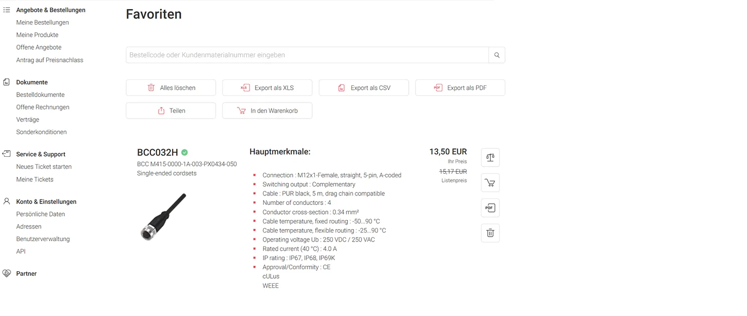 Mit der Balluff Teilen-Funktion können Sie einfach und unkompliziert die Inhalte Ihres Warenkorbs, der Vergleichs- oder Favoritenliste mit Kollegen teilen. Übermitteln Sie beispielsweise den benötigten Warenkorbinhalt Ihrem Einkäufer, der dadurch sofort die Produkte übernehmen und den Bestellprozess weiterführen kann.