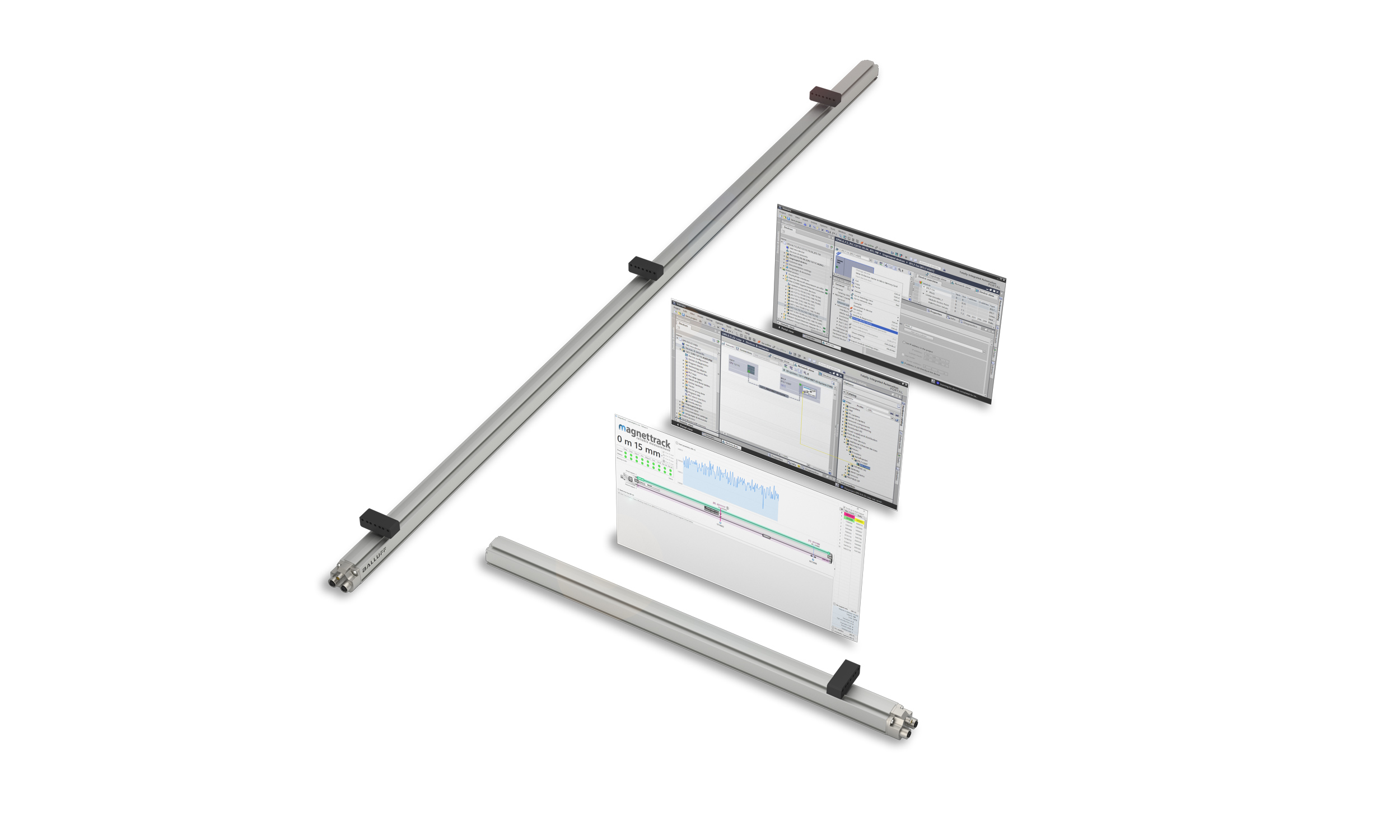Das Long Distance Positioning System (LDPS) besteht aus einem magnetostriktiven Positionsmesssystem, mit einer Profinet-Schnittstelle, mehreren Positionsgebern, die entlang des Verfahrwegs eines Krans installiert sind und deren Position durch den auf dem Kran montierten magnetostriktiven Sensor abgelesen werden. Diese Informationen werden an die Steuerung übertragen, welche die absoluten Koordinaten der Kranposition mit hoher Genauigkeit berechnet. Zusätzlich erhalten Sie einen Software-Funktionsbaustein, zur einfachen Einbindung in Ihre Steuerung.