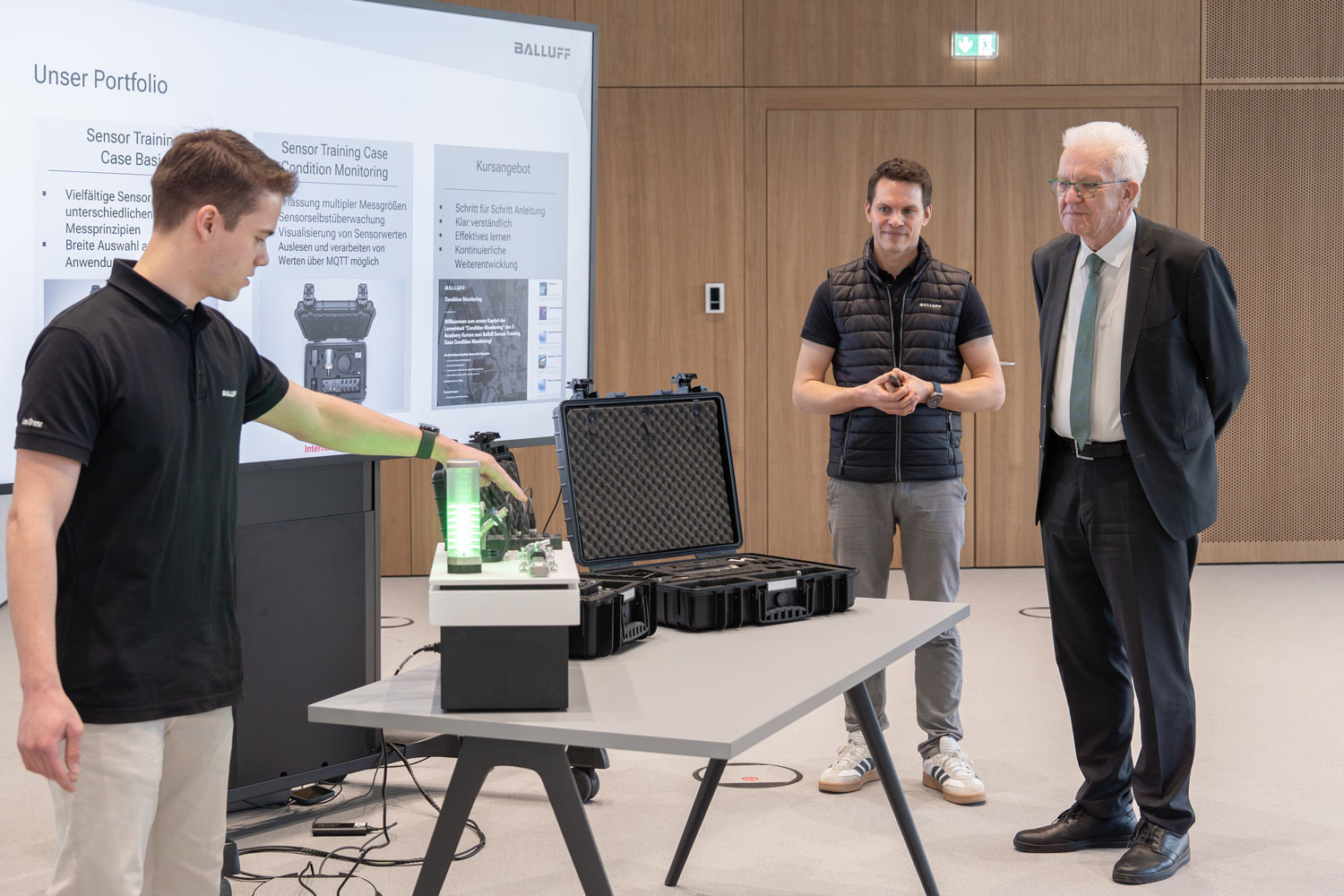 Ministerpräsident Winfried Kretschmann besucht Balluff in Neuhausen