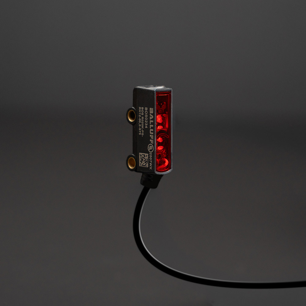 Diffuse sensor | 7.7 x 26.8 x 13.5 mm | PNP normally open (NO) | 1...60 mm | LED, red light | Cable, 2.00 m, PVC | LED, red light | ||