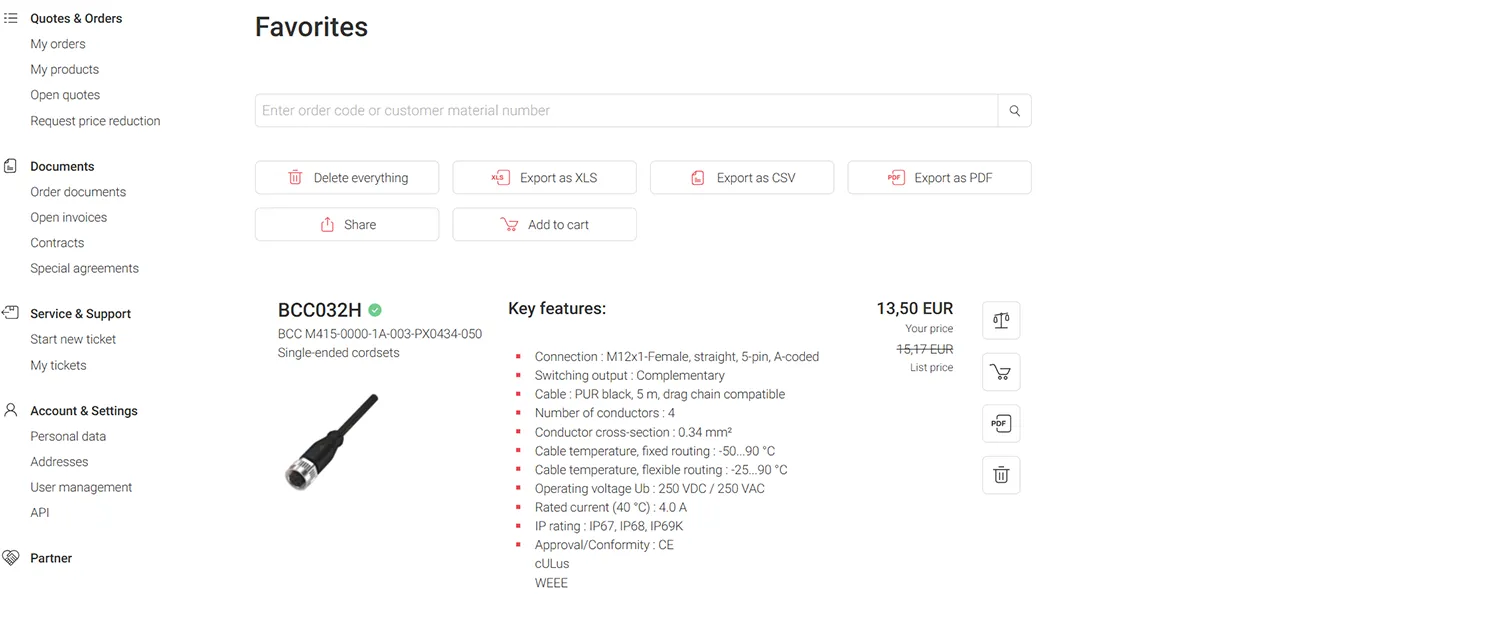 Now you can conveniently view your existing special agreements at any time through My Balluff.