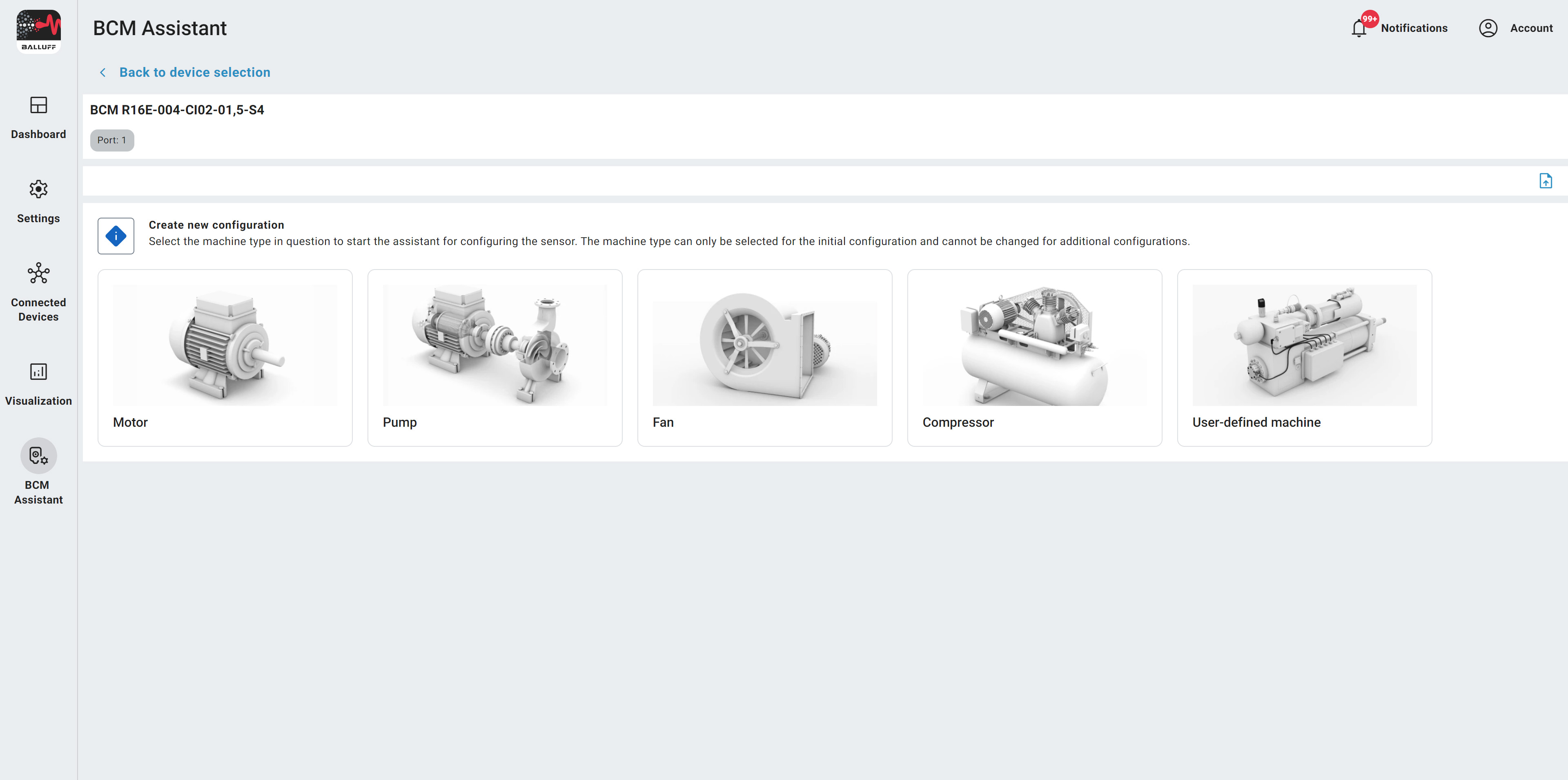 Select which machine type (e.g. pump) is to be monitored.