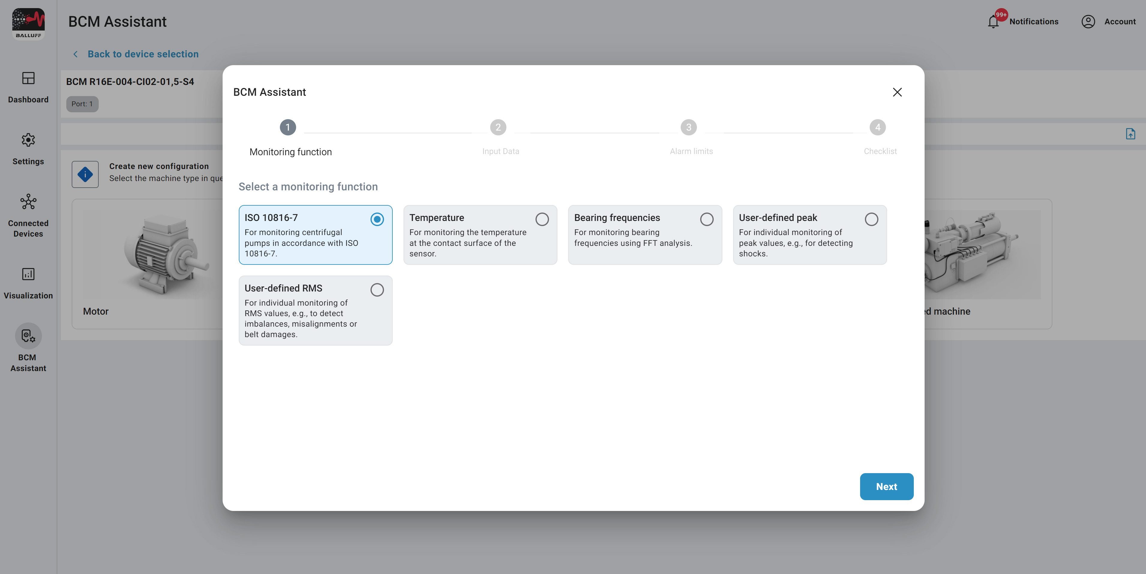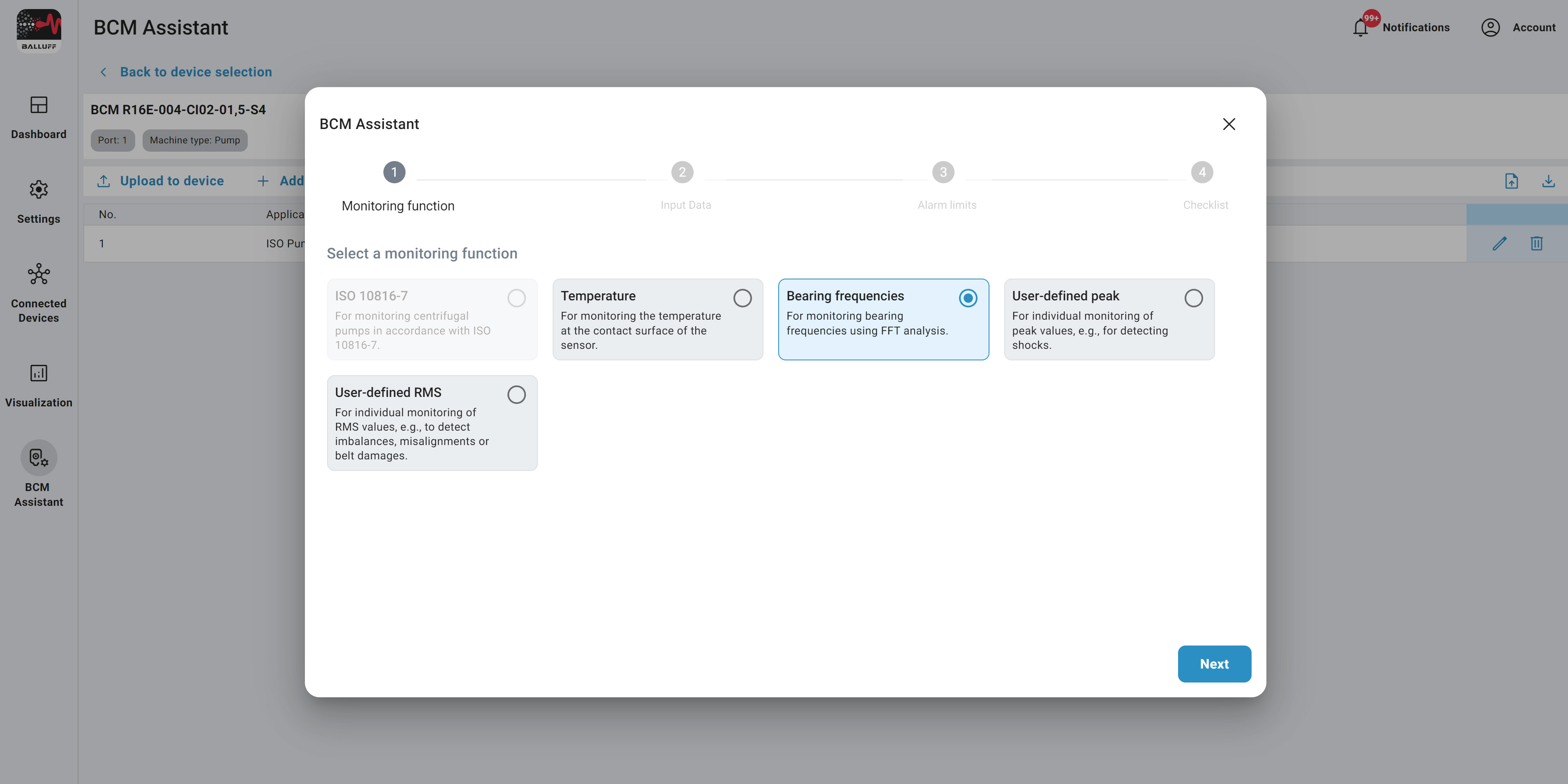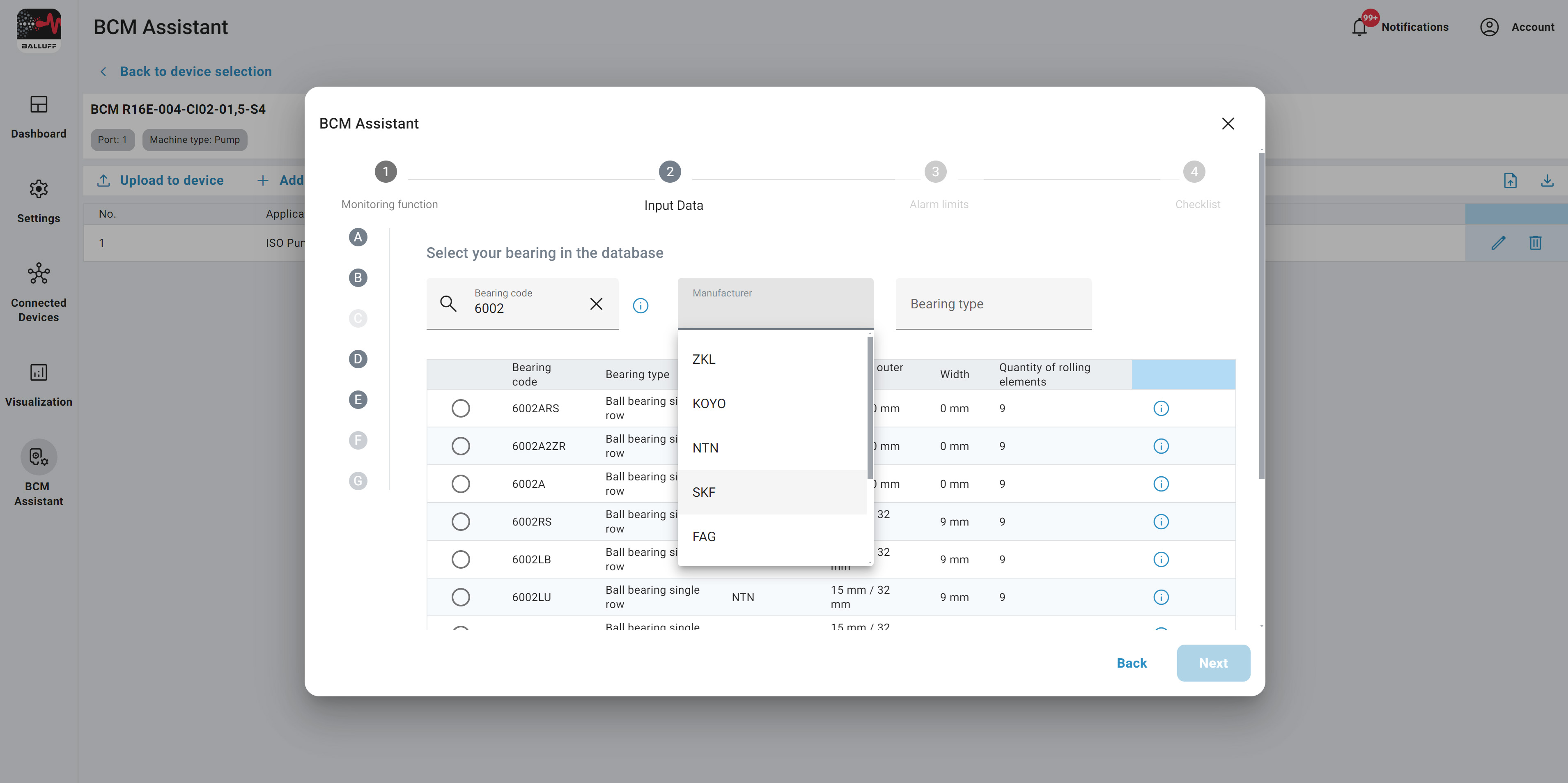 Select the bearing you want to monitor and the wizard will guide you through the rest.