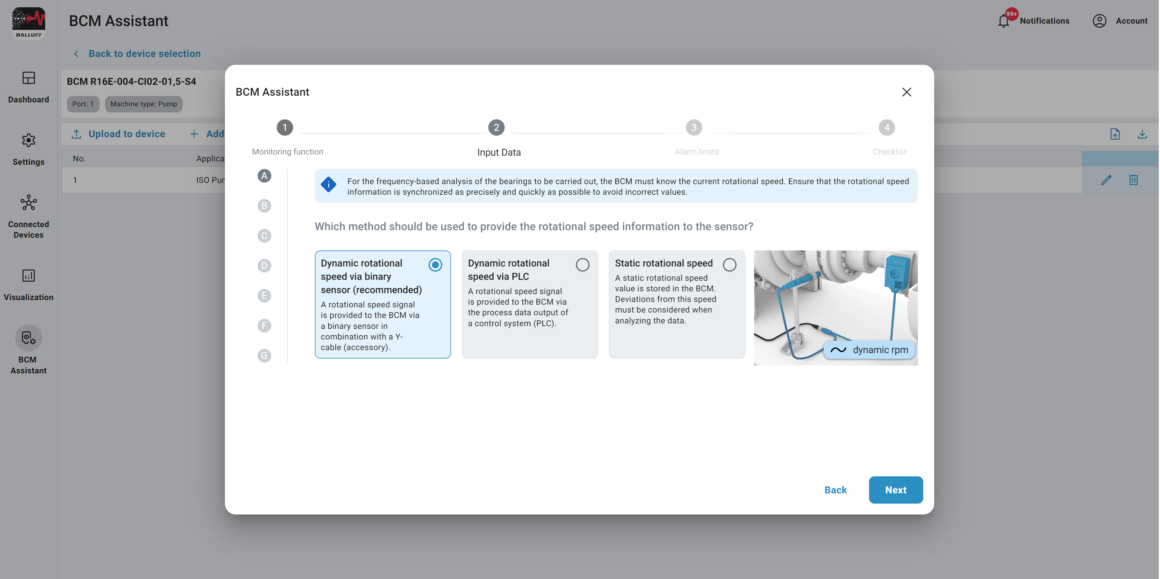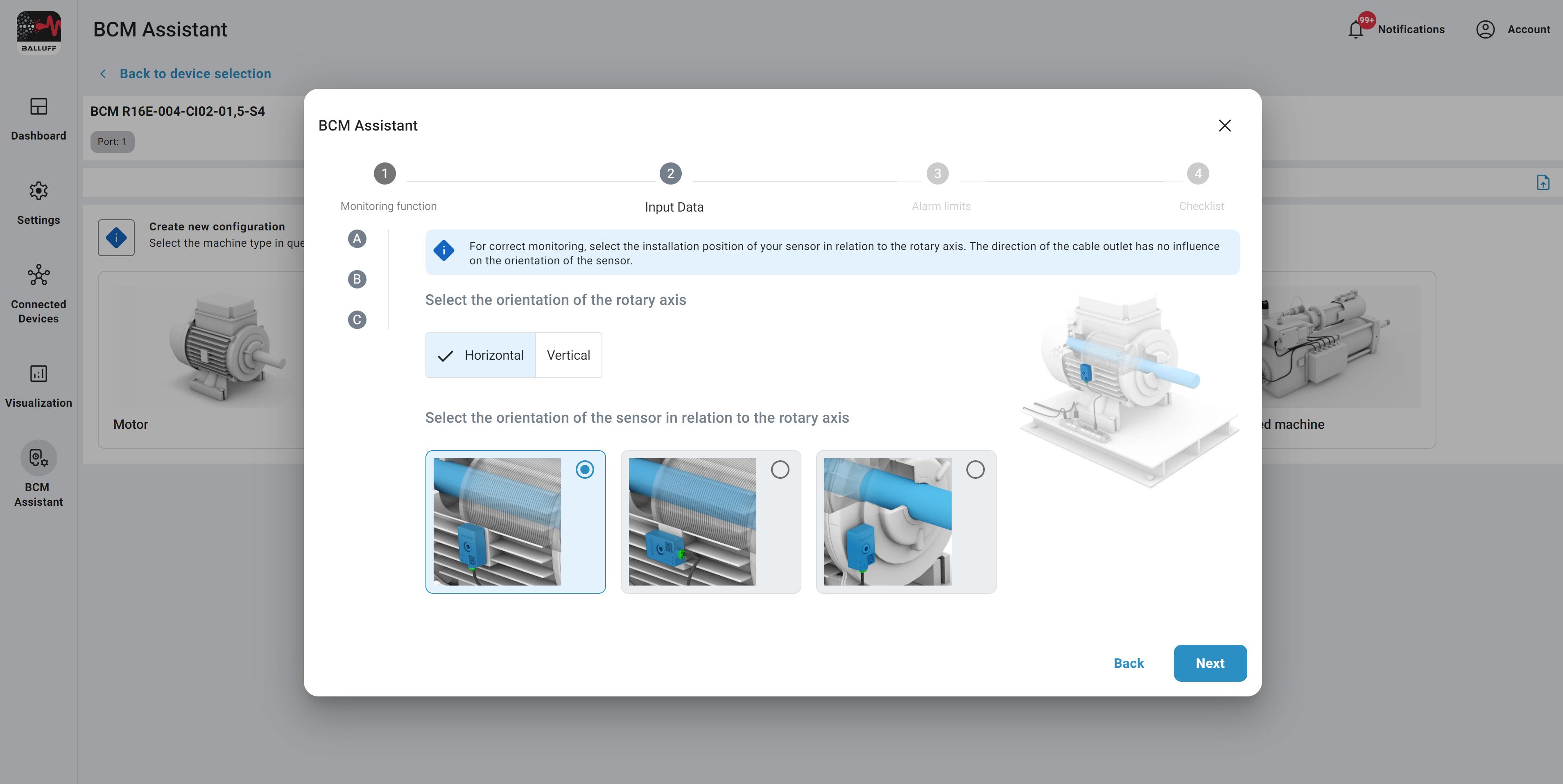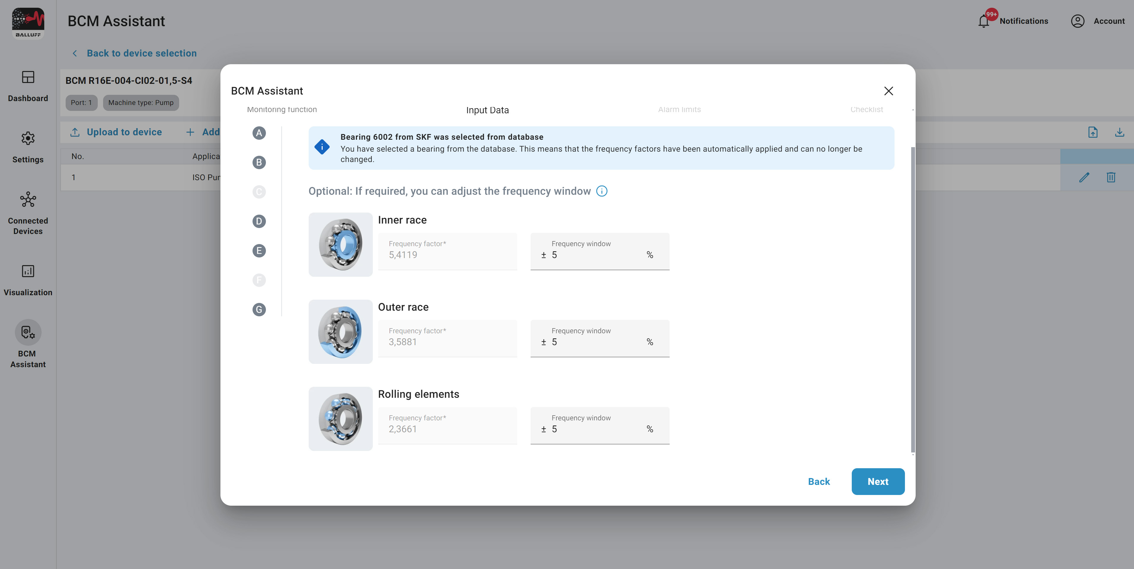 Select the bearing you want to monitor and the wizard will guide you through the rest.