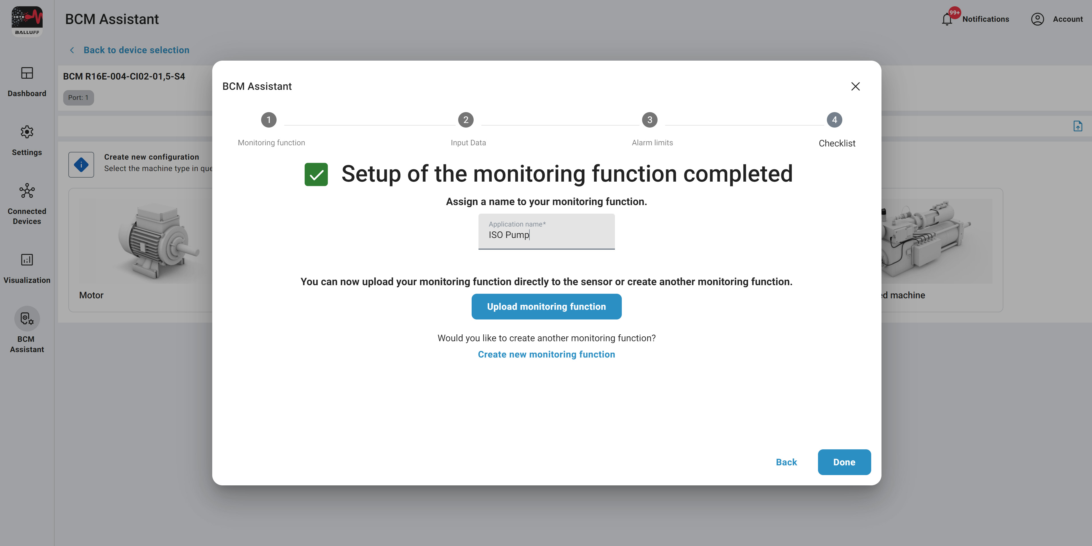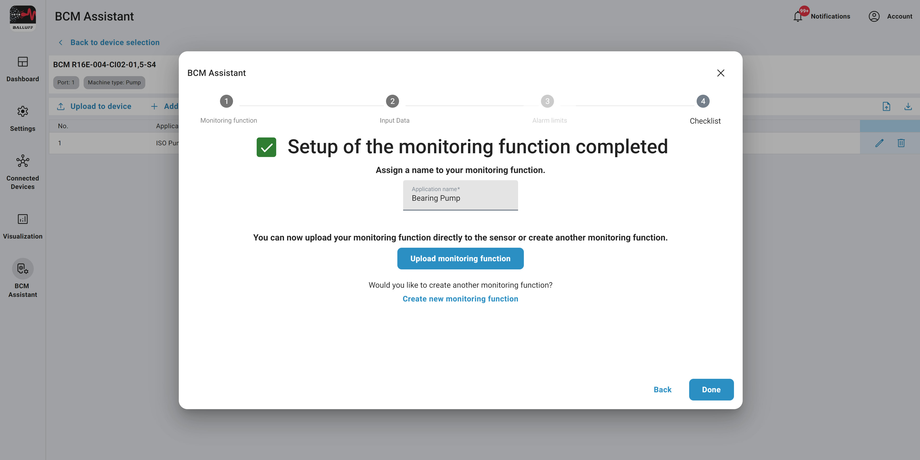 The configuration of your monitoring function is complete and ready for transfer to the sensor.