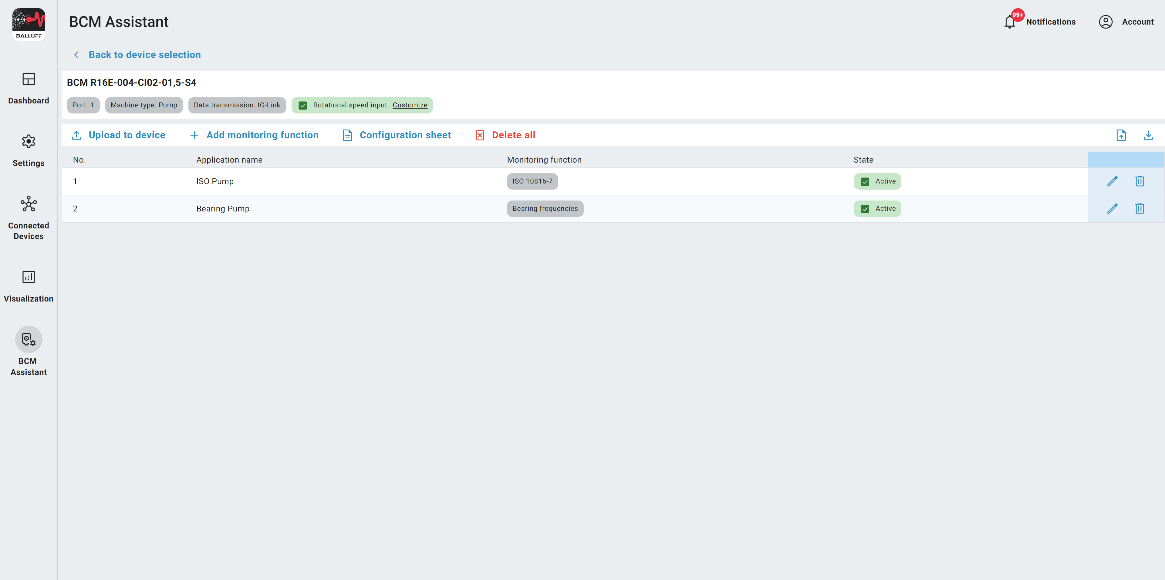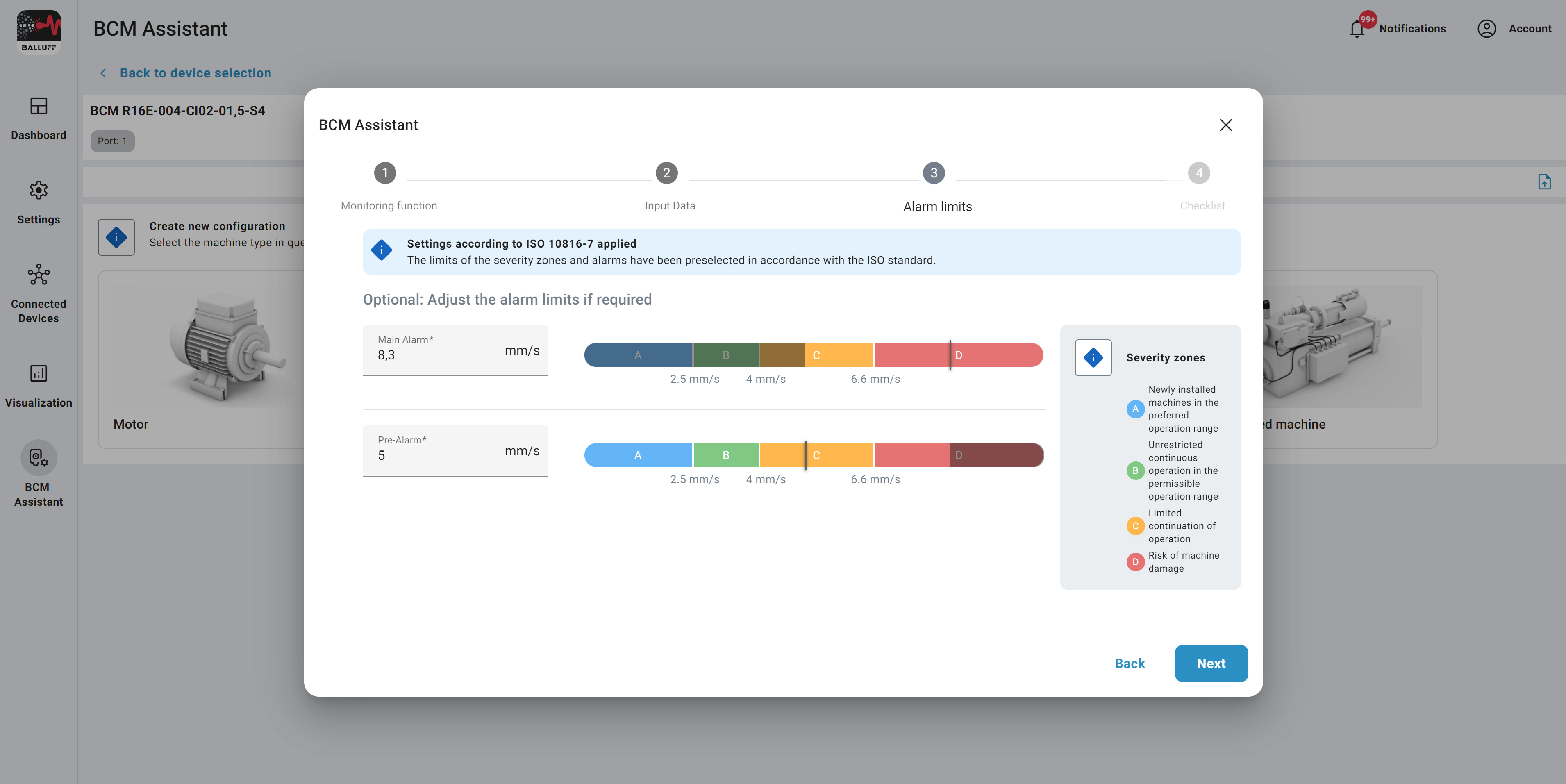 With just a few clicks, you can set BCM sensors optimally to your application. In addition to various ISO standards for a wide range of machine types, it also gives you access to an extensive database with more than 160,000 types of sensor.