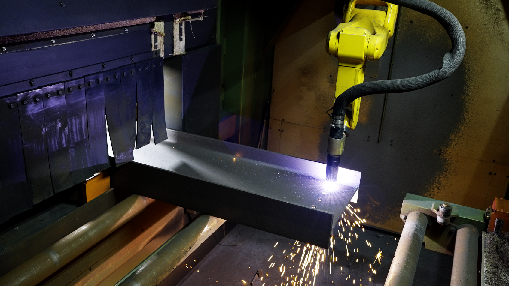 With PeddiBot, Peddinghaus has a product family on the market that enables precise thermal cutting by means of a plasma cutter at the end of a robot arm. Precise means that the distance between the plasma cutter and the steel profile must remain the same in order to achieve a uniform cutting pattern without burrs and therefore without reworking. The data for guiding the robot arm is calculated using a 3D vision system. The steel profile is guided past the vision system, which continuously records a laser beam projected onto the steel and sends the data to a vision server on an industrial PC designed for image processing. A Center of Gravity (COG) algorithm is used to determine the laser line in the image and a homography matrix is applied to convert the 2D pixel coordinates into real 3D measurements. The coordinates for the robot's cutting paths are determined on this basis.