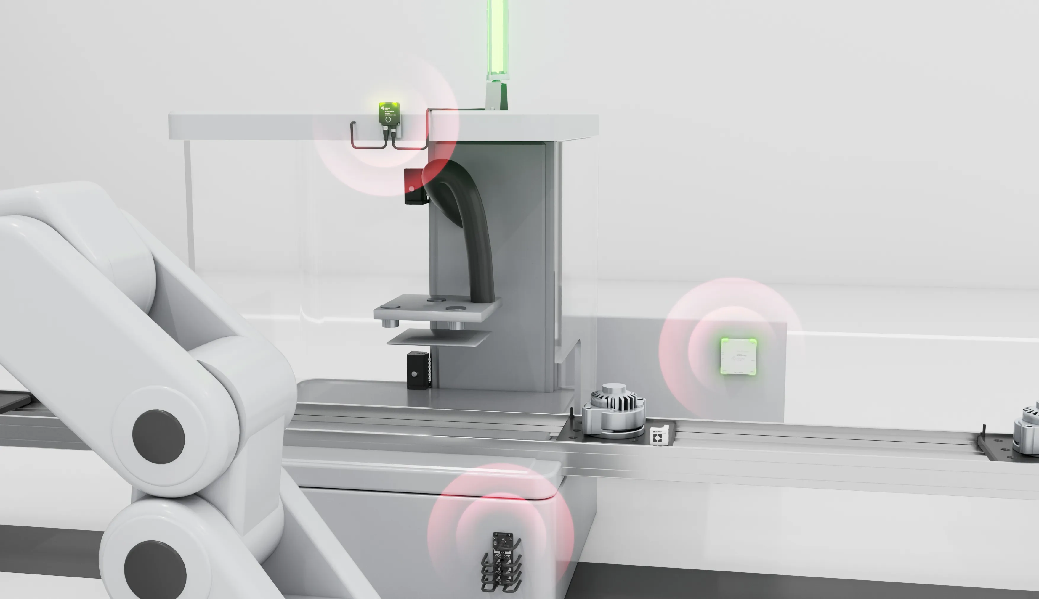 For robots, robotic arms and transport systems, non-contact data transmission enables new applications that were not feasible before. In combination with our inductive couplers (BIC) for supplying a non-contact power source, new use cases will be possible.