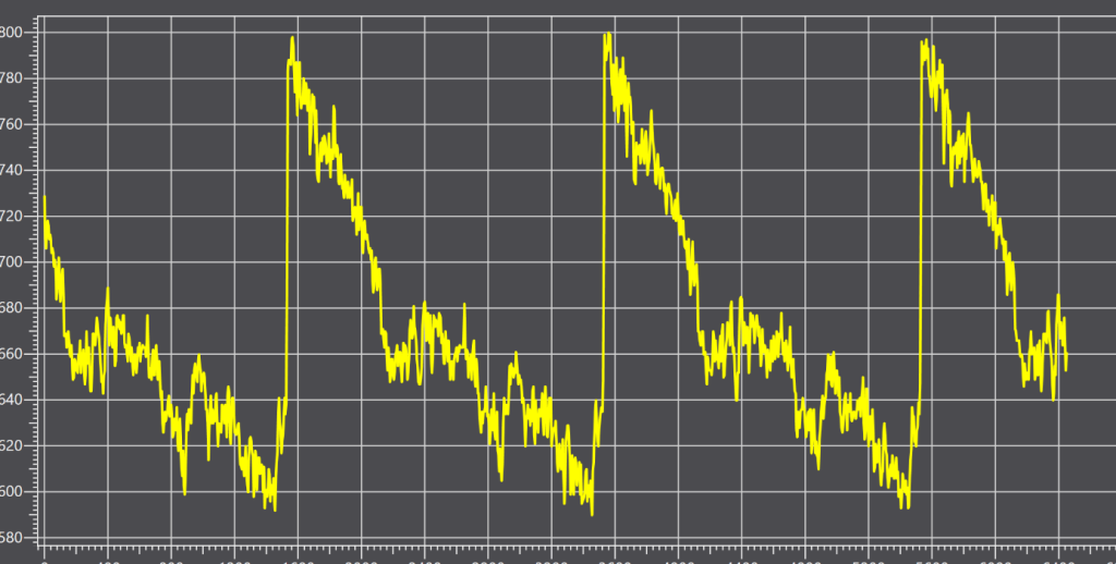 A puck was mounted in the axis of the screwed-in nipple, on which the sensor beam falls. The puck changes height according to the position of the nipple, which is registered by the sensor. This process can be seen in the graphs below.