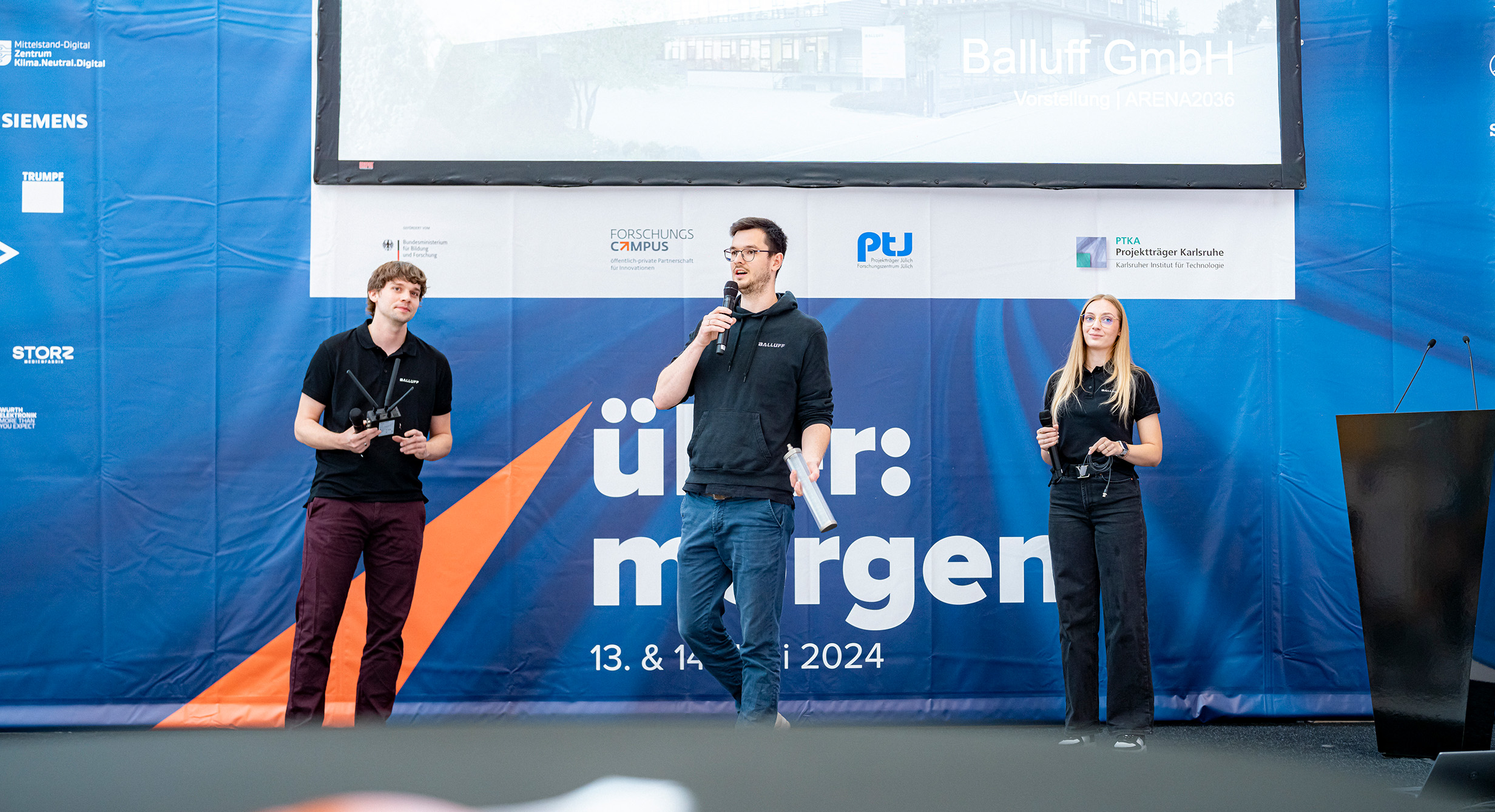 The Über:morgen event took place on June 13 and 14 2024 to celebrate the 10th anniversary of ARENA2036 and the start of the third funding phase. The event included a project fair and inspiring keynotes and panel discussions. The event provided a platform for partners and members to showcase their progress and achievements and discuss future projects. It was an opportunity to explore the visions and technologies of the next decade and create new synergies. Balluff presented an innovative vibration demonstrator that shows how predictive maintenance can be used to detect anomalies. This technology enables the early detection of deviations and makes it possible to failures, which significantly increases the efficiency and reliability of production processes.