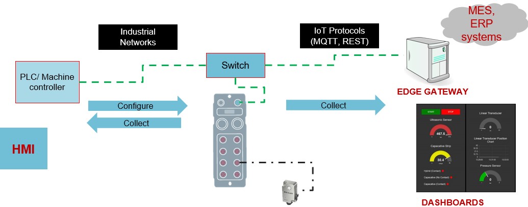 In my previous blog post from early summer, I talked about IO-Link sensors with condition monitoring features that work with PLCs. I covered how condition monitoring variables can be set up as alarms and how simple logic can be set up inside the sensor so it only sets off those alarms to the PLC in real time to alert operators when something is wrong. Many companies, however, take advantage of the IoT sensor data with the long-term goal of analyzing the environmental data conditions to predict maintenance needs in real time versus relying on a schedule. Some even want to connect directly to their MES systems to inform maintenance personnel of daily maintenance orders, which requires a separate device, such as an IoT edge gateway.