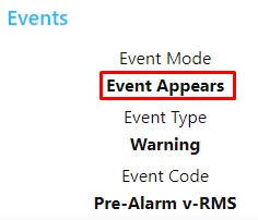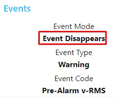 When the vibration level is back in range, the alarm condition is no longer present in the IO-Link device, the process repeats itself. In this case the Event Type and Event Code will be the same. The only change is that the Event Mode will report Event Disappears.