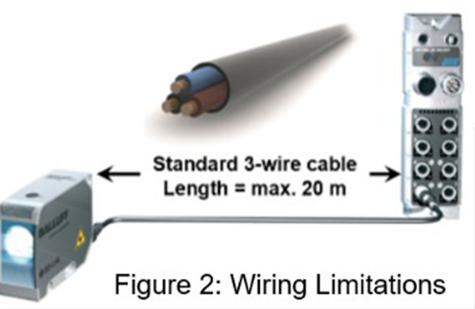 Distance. IO-Link communication is limited to a maximum distance of 20 meters between the field device to the gateway. Distance limitations can typically be overcome by using the fieldbus connection to travel distances greater than 20 meters.
