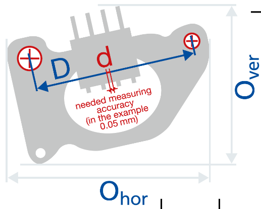 In the task, the distance (D) between the centers of both holes is determined with the measurement accuracy (d). Using these values, we then determine the parameter for selecting the right image sensor and camera.