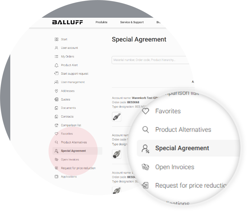 Mi Balluff le ofrece una visión global de todos sus acuerdos especiales existentes.
