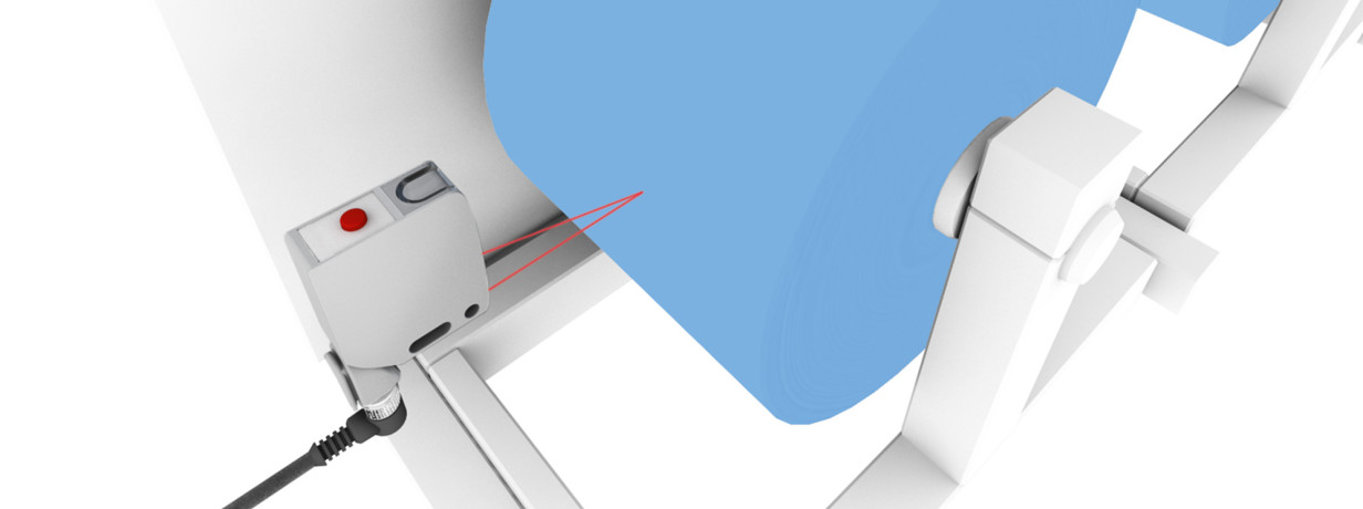 Dans le cas d'installations à enrouleur et dérouleur, un capteur optoélectronique mesure en continu le diamètre de rouleau qui augmente ou qui diminue. Et cela indépendamment du matériau en rouleau et de sa couleur. De ce fait, les rouleaux peuvent être changés en réduisant au maximum les temps d'immobilisation.