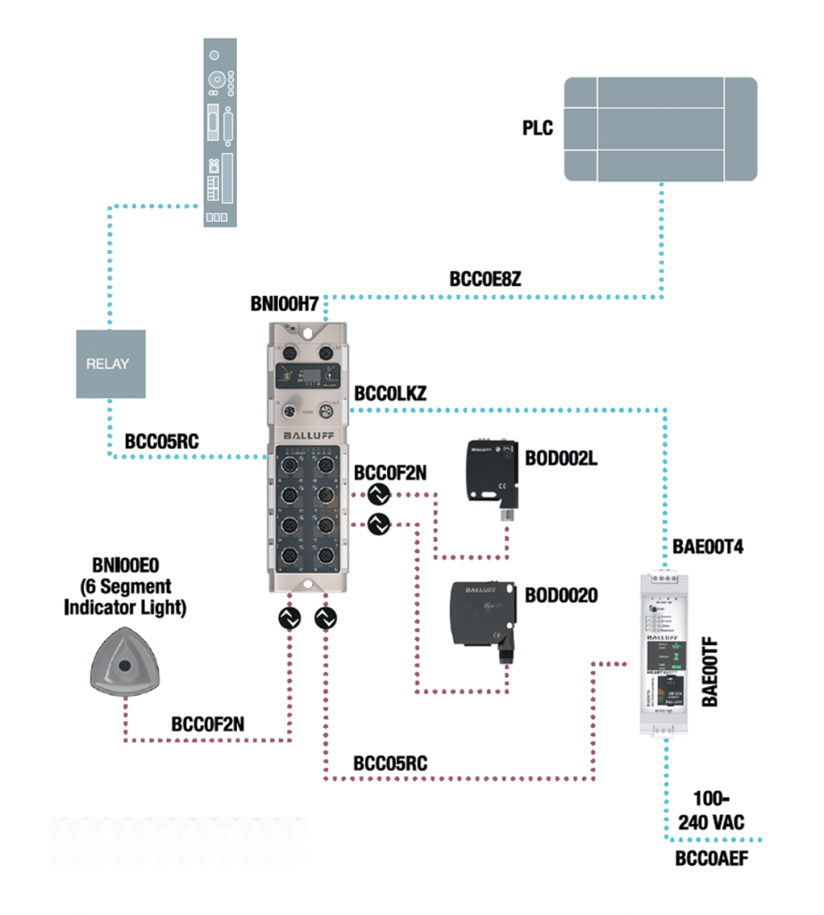 Podłączone laserowe czujniki odległości i indukcyjne czujniki położenia wykrywają pozycje podczas przełączania i znacznie upraszczają prawidłową zmianę formatu. Czujnik w module sieciowym BNI IO-Link wskazuje również stan funkcjonalny podłączonych sensorów. Zapewnia to dodatkowe opcje rozwiązywania problemów podczas konserwacji.