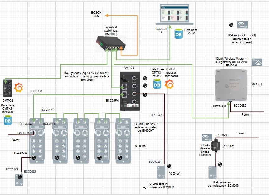 Conexão de BCMs via IO-Link Wireless, integrando os dados ao Dashboard do CMTK.