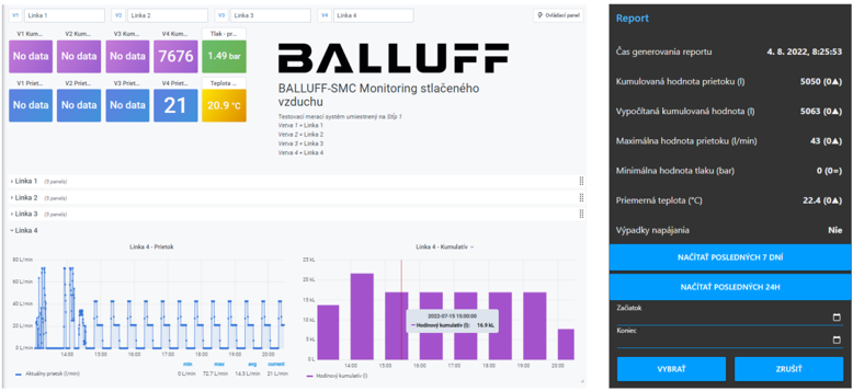 Os dados coletados pelos dispositivos IO-Link foram armazenados em um banco de dados externo, criado e mantido pelo cliente. A comunicação entre o master e o banco de dados foi realizada via REST-API, garantindo uma integração fluida e confiável. Além disso, o banco de dados externo foi integrado ao Dashboard Grafana-CMTK, permitindo que o cliente monitorasse as informações de todos os CMTKs em um único local.