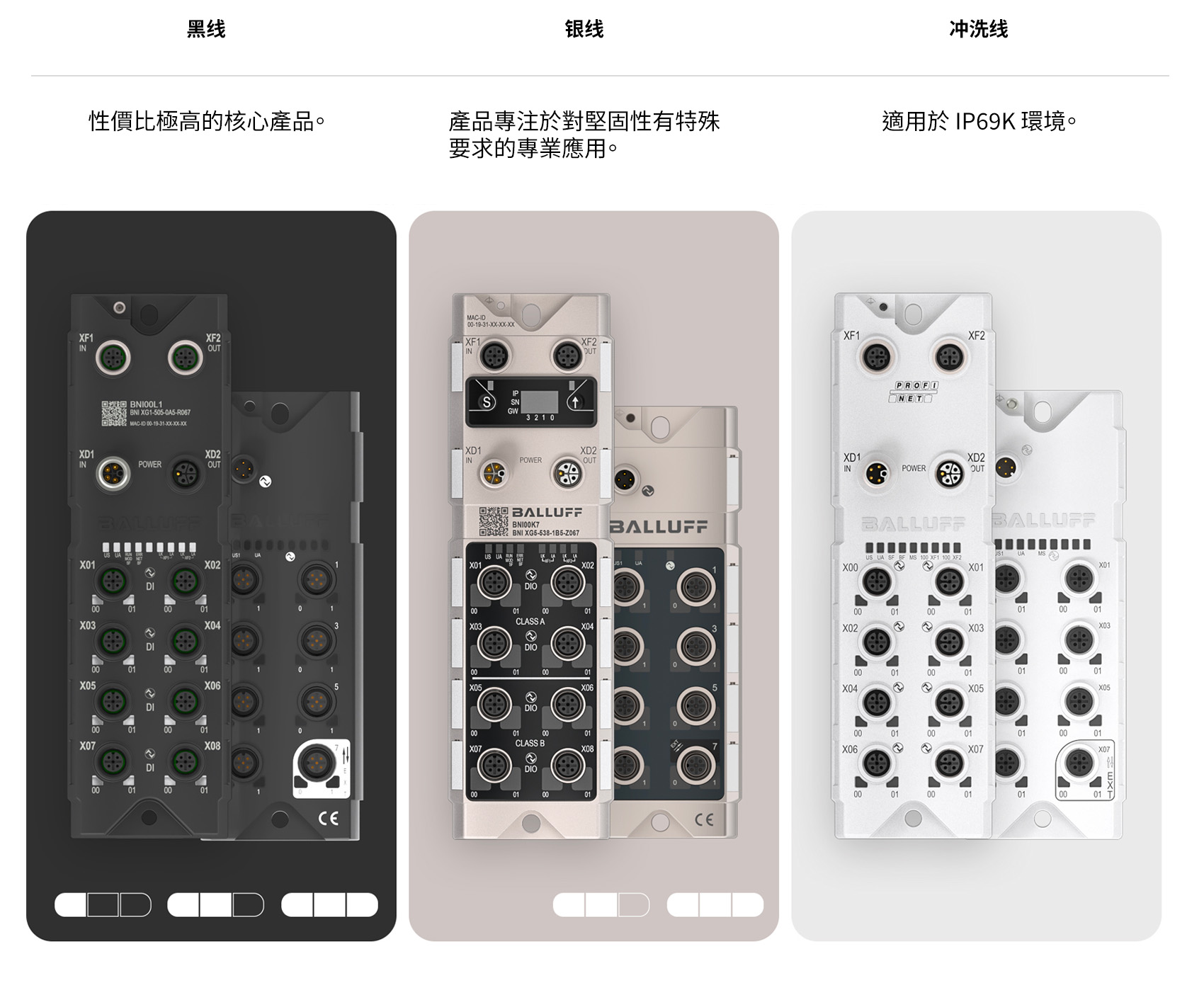 無論您是從簡單的現場層連接開始,還是打造先進的工業物聯網(IIoT)安全與診斷系統,巴魯夫全新升級的網路產品組合(黑色/銀色/沖洗系列)都能依據您的需求,提供靈活性與相應的效能表現。
